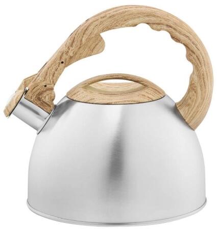 A Lahti 2,5 literes, ezüstszínű vízforraló egy nagyon funkcionális kanna, amely lehetővé teszi, hogy minden reggel aromás kávét és teát készítsen. A levehető fedél és a biztonsági síp megkönnyíti az italok elkészítését. A rozsdamentes acél tartósságot, ellenálló képességet biztosít a kannának. A kemény és környezetbarát fogantyú természetes fahatású műanyagból készült. Hasznos űrtartalom: 1,75 l.