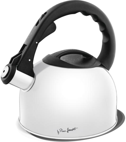 A Lamart márkájú Lumier teáskanna kiváló minőségű rozsdamentes acélból készül, tartós műanyag fogantyúval. A víz forrását síp jelzi. A teáskanna műanyag fedéllel van ellátva a könnyű hozzáférhetőség érdekében, az edény tisztításához és feltöltéséhez. Minden típusú főzőlapon használható, az indukciós tűzhelyeket is beleértve. Az egyszerű kezelés, karbantartás és tisztítás magától értetődő. Jellemzői: - Anyaga: rozsdamentes acél - Műanyag foganytúk és fedél - Minden típusú főzőlapon használható - Tartály kapacitása: 2 l